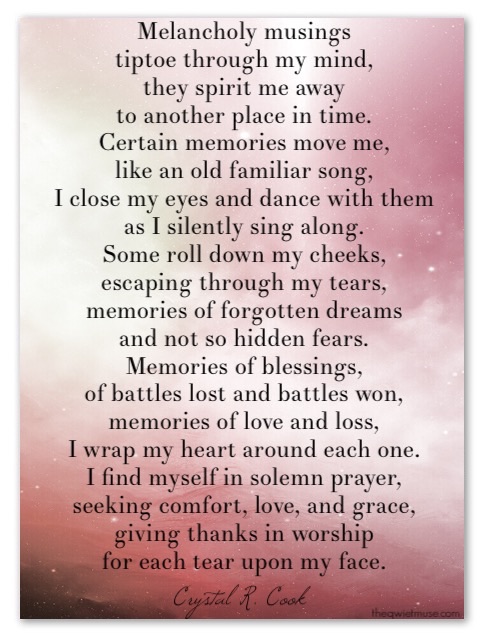 Melancholy Musings Dec30 Published at 483 × 640 in Melancholy Musings If you liked what you just read, like it, pin it, share it, tweet it, stumble it! Thank you!Tweet Click to share on StumbleUpon (Opens in new window) StumbleUpon Share on Tumblr Click to email a link to a friend (Opens in new window) Email PocketMore Click to share on Reddit (Opens in new window) Reddit Like Loading...