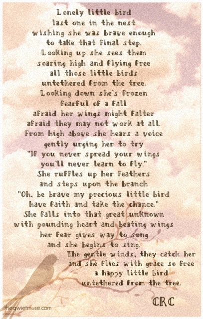 Fly with faith Jan6 Published at 407 × 640 in Spread your wings and fly. If you liked what you just read, like it, pin it, share it, tweet it, stumble it! Thank you!Tweet Click to share on StumbleUpon (Opens in new window) StumbleUpon Share on Tumblr Click to email a link to a friend (Opens in new window) Email PocketMore Click to share on Reddit (Opens in new window) Reddit Like Loading...