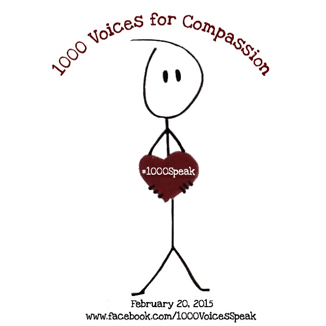 #1000Speak Jan20 Published at 640 × 640 in Will you join us? 1000 Voices speak for compassion on 02/20/15 If you liked what you just read, like it, pin it, share it, tweet it, stumble it! Thank you!Tweet Click to share on StumbleUpon (Opens in new window) StumbleUpon Share on Tumblr Click to email a link to a friend (Opens in new window) Email PocketMore Click to share on Reddit (Opens in new window) Reddit Like Loading...
