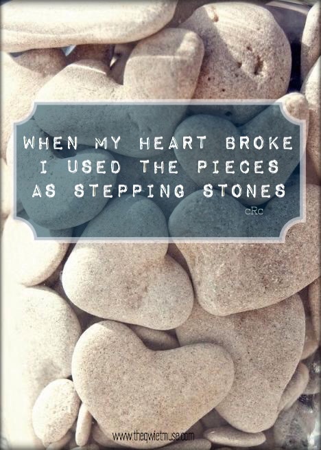 When my heart was broken Jan29 Published at 468 × 655 in I mend it with the broken pieces. When my heart was broke I used the pieces as stepping stones. If you liked what you just read, like it, pin it, share it, tweet it, stumble it! Thank you!Tweet Click to share on StumbleUpon (Opens in new window) StumbleUpon Share on Tumblr Click to email a link to a friend (Opens in new window) Email PocketMore Click to share on Reddit (Opens in new window) Reddit Like Loading...